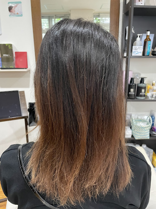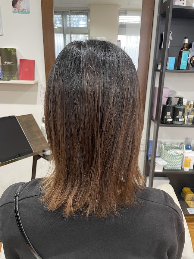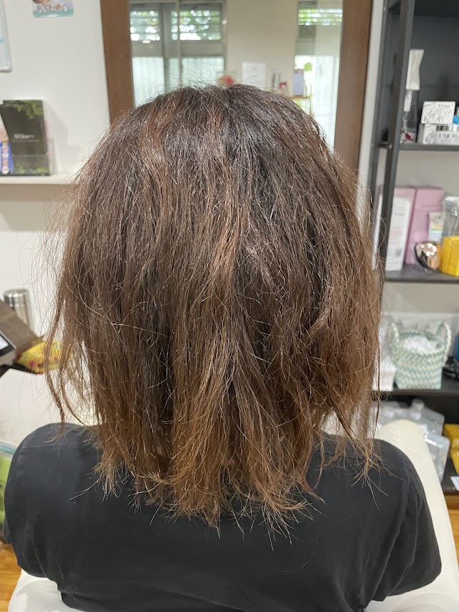 本当は毛先の傷んでいる所をカットしたいところですが、カットは他の美容院に通っているそうなので、そちらにお任せ致します。